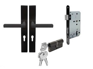 Khóa tay gạt Hafele đi kèm thân khóa và ruột khóa tương ứng cho từng loại cửa: phòng ngủ, cửa chính và WC. Ngoài ra còn có tay đẩy hơi lắp âm/lắp nổi và bản lề tải trọng cao.
